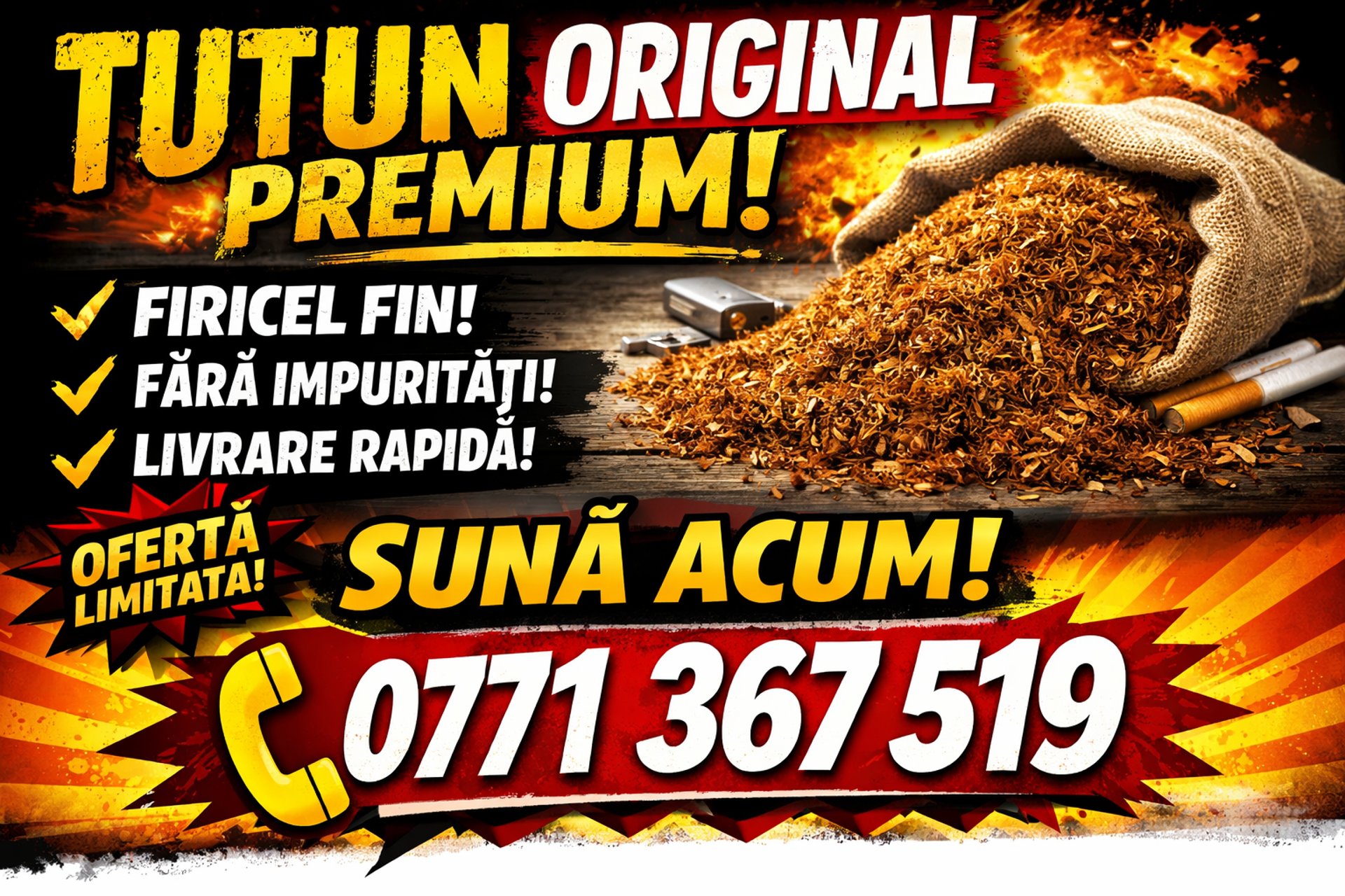 Reduceri speciale la tutun FIRICEL SI TUTUN LA GALEATA! SUNA ACUM!!! OFERTA LIMITATA! - 0771 367 519